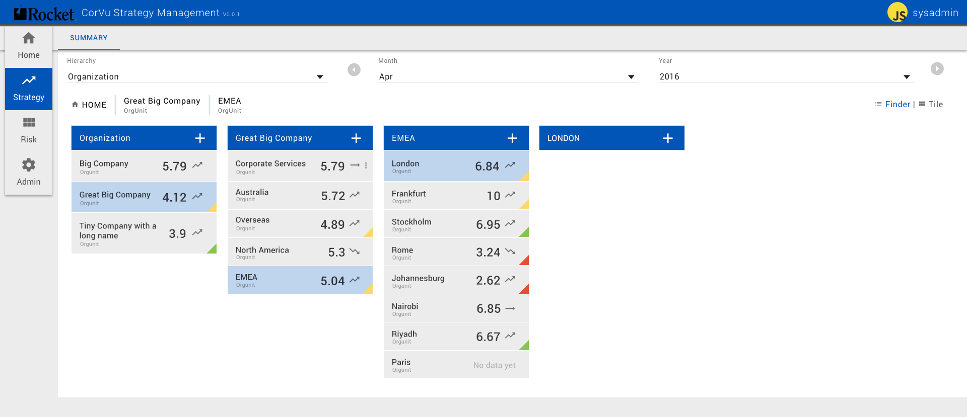 This application allowed customers to manage strategy and risk of their organisations and projects via an online web application. Similar to Discover, the app took cues from Material design in its UI and UX.